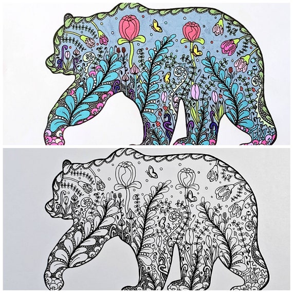 Bear And Flowers Printable Coloring Page Bear Coloring Page Etsy Uk